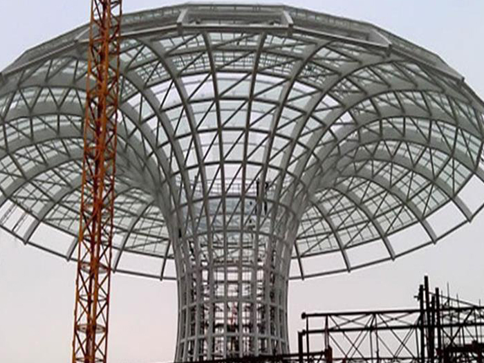 二、球形网架结构因其结构新颖,受力合理,自重轻、用钢量低等优点。如大型体育场馆球形玉树螺栓球网架、公共场馆球形网架、电厂玉树螺栓球网架、水泥工业球形网架、仓储物流球形网架、玉树干煤棚工业球形网架、玉树收费站玉树加油站球形网架、展览中心、影剧院、商场、航站楼、候车厅、工厂玉树车间、仓库、电视塔等球形螺栓球节点网架。国内球形网架结构主要分为:玉树焊接球节点网架及螺栓球节点网架两种。螺栓球节点网架其构件工厂内加工量较大,现场安装便捷,适用于现场工期紧,玉树施工条件、用电量受制约,网架形状复杂、玉树杆件定位困难的异形结构。螺栓球节点球形网架系统基本由玉树杆件、螺栓球、支撑支座等组成。按照节点形式可分为交叉玉树桁架体系、四角锥体系、三角锥体系等。支撑方式多为固定支座支撑。对于大面积、大跨度及有特殊受力或伸缩要求的网架结构可采用橡胶支座、滑移支座、球铰支座等支撑形式,以满足结构自身的受力稳定、均衡,便于内力释放等设计要求。